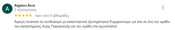 Άψογη ποιότητα σε συνδυασμό με καταπληκτική εξυπηρέτηση! Ευχαριστούμε για όλα σε όλη την ομάδα του καταστήματος Αγίας Παρασκευής και την ομάδα στο εργοστάσιο!