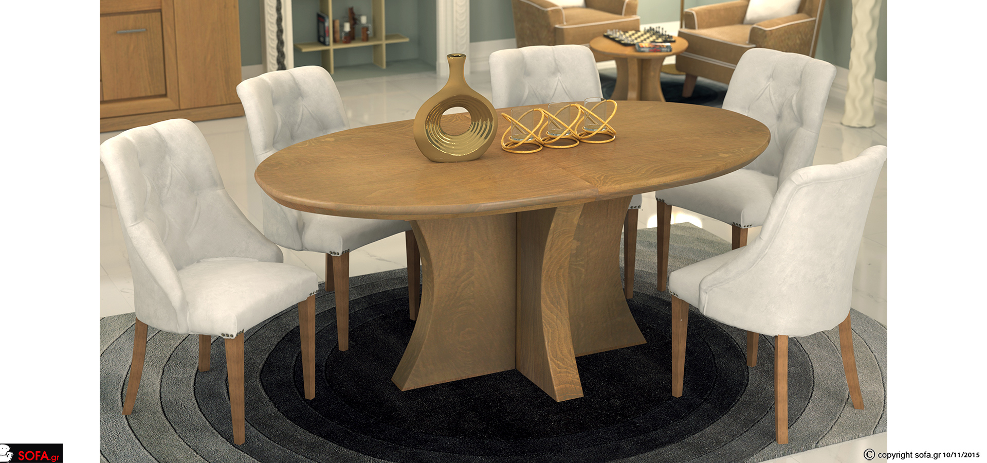 Στον ίδιο χώρο επίσης θα ήταν όμορφο να τοποθετήσετε περιμετρικά διάφορα έπιπλα που θα μειώσουν την αίσθηση του μακρόστενου, όπως έναν μπουφέ και χαμηλές βιβλιοθήκες. Από την άλλη, σε έναν τετράγωνο χώρο ταιριάζουν καλύτερα έπιπλα με στρογγυλεμένες γωνίες και η αρμονία αυτού του σχήματος θα σας επιτρέψει να φορτώσετε, αν θέλετε, περισσότερο το δωμάτιο και να δημιουργήσετε έτσι ένα κλασικό σαλόνι.