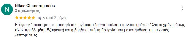 Εξαιρετική ποιοτητα στο μπουφέ που αγόρασα έμεινα απόλυτα ικανοποιημένος. Όλοι οι χρόνοι όπως είχαν προβλεφθεί. Εξαιρετική και η βοήθεια από τη Γεωργία που με κατηύθυνε στις τεχνικές λεπτομέρειες