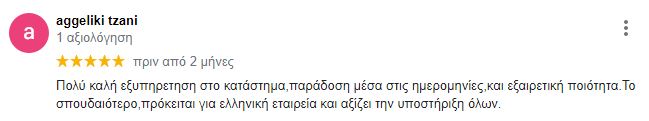 Πολύ καλή εξυπηρετηση στο κατάστημα,παράδοση μέσα στις ημερομηνίες,και εξαιρετική ποιότητα.Το σπουδαιότερο,πρόκειται για ελληνική εταιρεία και αξίζει την υποστήριξη όλων.