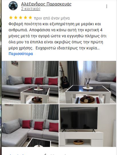 Φοβερή ποιότητα και εξυπηρέτηση με μεράκι και ανθρωπιά. Αποφάσισα να κάνω αυτή την κριτική 4 μήνες μετά την αγορά ώστε να εγγυηθώ πλήρως ότι όλα μου τα έπιπλα είναι ακριβώς όπως την πρώτη μέρα χρήσης. Ευχαριστώ ιδιαιτέρως την κυρία Κατερίνα Δήμου για την άψογη συνεργασία. Να σημειωθεί ότι όλα τα έπιπλα είναι με τροποποίηση στις διαστάσεις πράγμα που με έλυσε τα χέρια λόγω μικρού σπιτιού ώστε να ταιριάζουν ακριβώς στο χώρο.