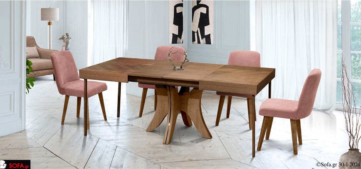 Τραπεζαρία Domus - Η Domus συνδυάζει αρμονικά τη σταθερότητα του ξύλου με minimal σχεδιασμό. Διαθέτει 3 προεκτάσεις των 40cm για να μεγαλώνει όσο χρειαστεί. Αποτελεί την τέλεια βάση για καλοκαιρινά γεύματα με φίλους και οικογένεια.