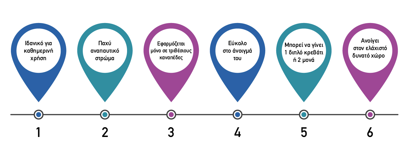 6. Ο καναπές-κρεβάτι διαθέτει στρώμα που προσφέρει αντίστοιχα αναπαυτικό ύπνο με το παραδοσιακό κρεβάτι.