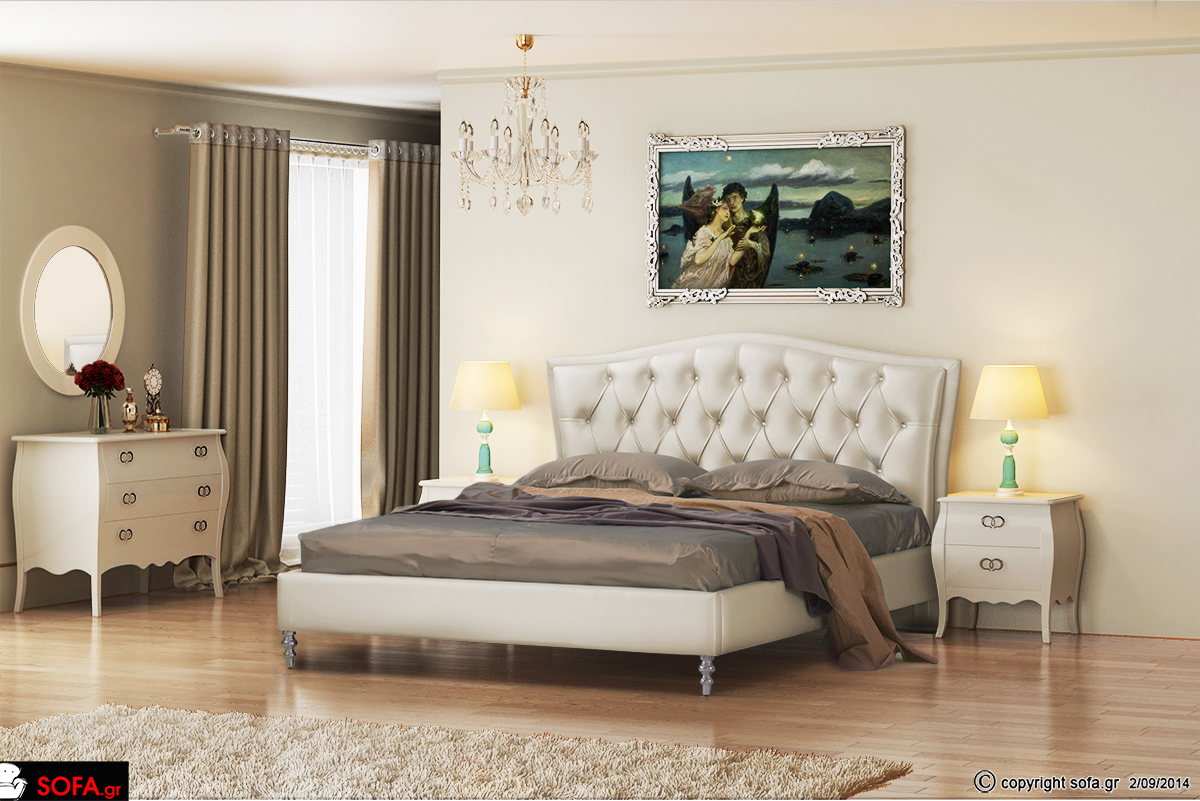 Κρεβατοκάμαρα Καπιτονέ Iris. Αριστοκρατική, με κομψά στοιχεία σχεδίασης και πλατιά ξύλινα πόδια για γερή στήριξη και ωραίο αισθητικό αποτέλεσμα. Δείτε λεπτομέρειες εδώ