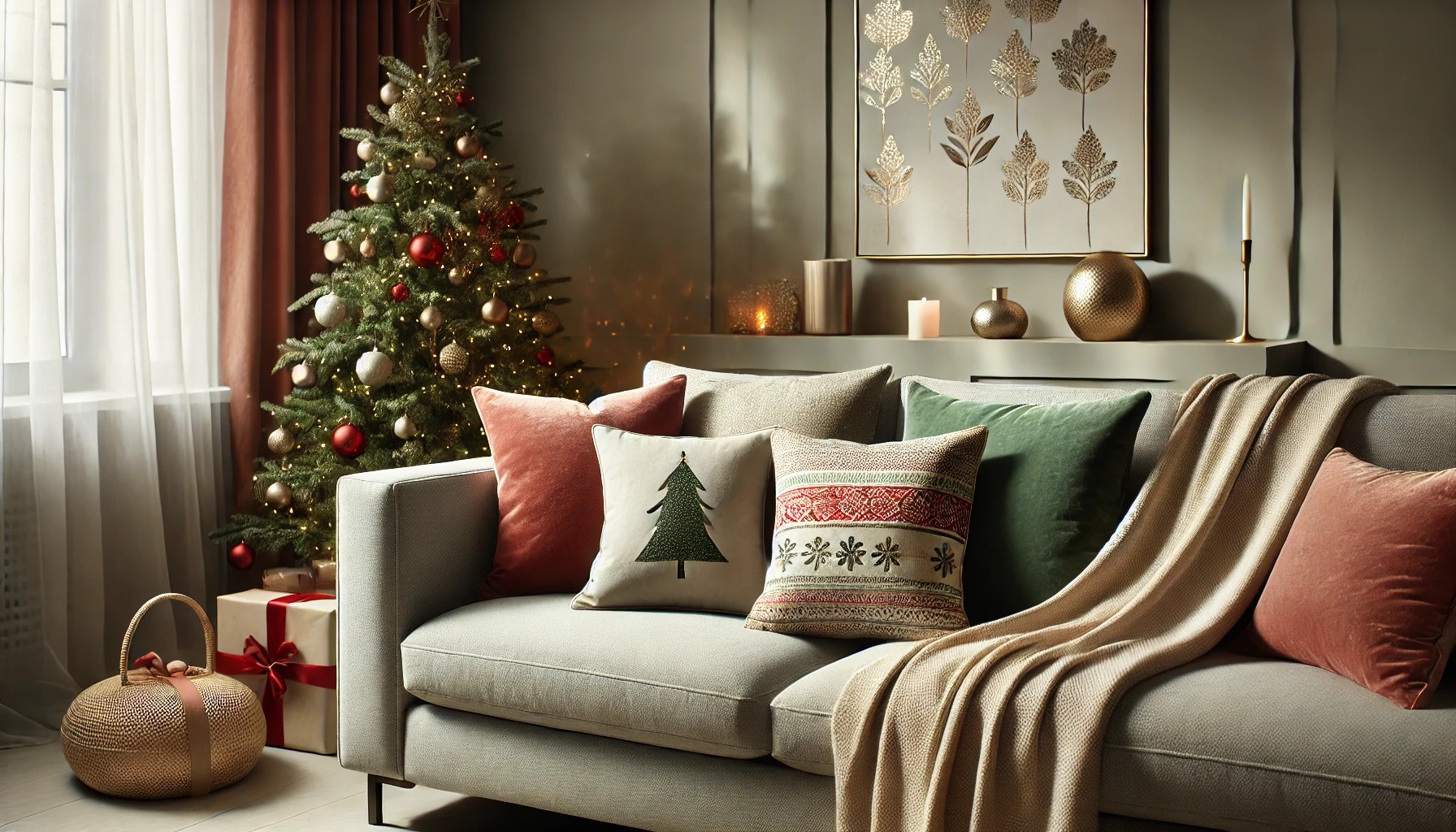 Ανανεώστε τον καναπέ σας με μαξιλάρια και ριχτάρια σε ζεστά υφάσματα και γιορτινά χρώματα. Το κόκκινο, το πράσινο και οι μεταλλικές αποχρώσεις είναι ιδανικά για αυτή την εποχή. Αυτά τα μικρά στοιχεία μπορούν να δώσουν μια εντελώς νέα αίσθηση στον χώρο σας.