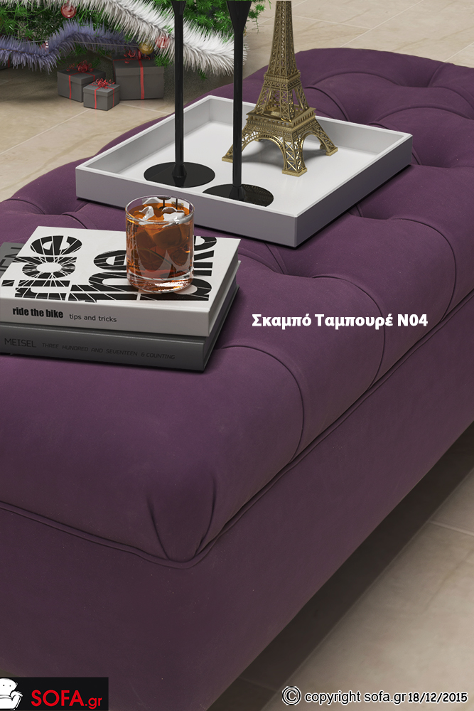 01. Σκαμπό ταμουρέ Νο4. Ταμπουρέ με καθισμα απο έντονο καπιτονε και σε μοντέρνο χρωματισμό. Ένα τέλειο συνοδευτικό έπιπλο για την κρεβατοκάμαρα Νο4.
