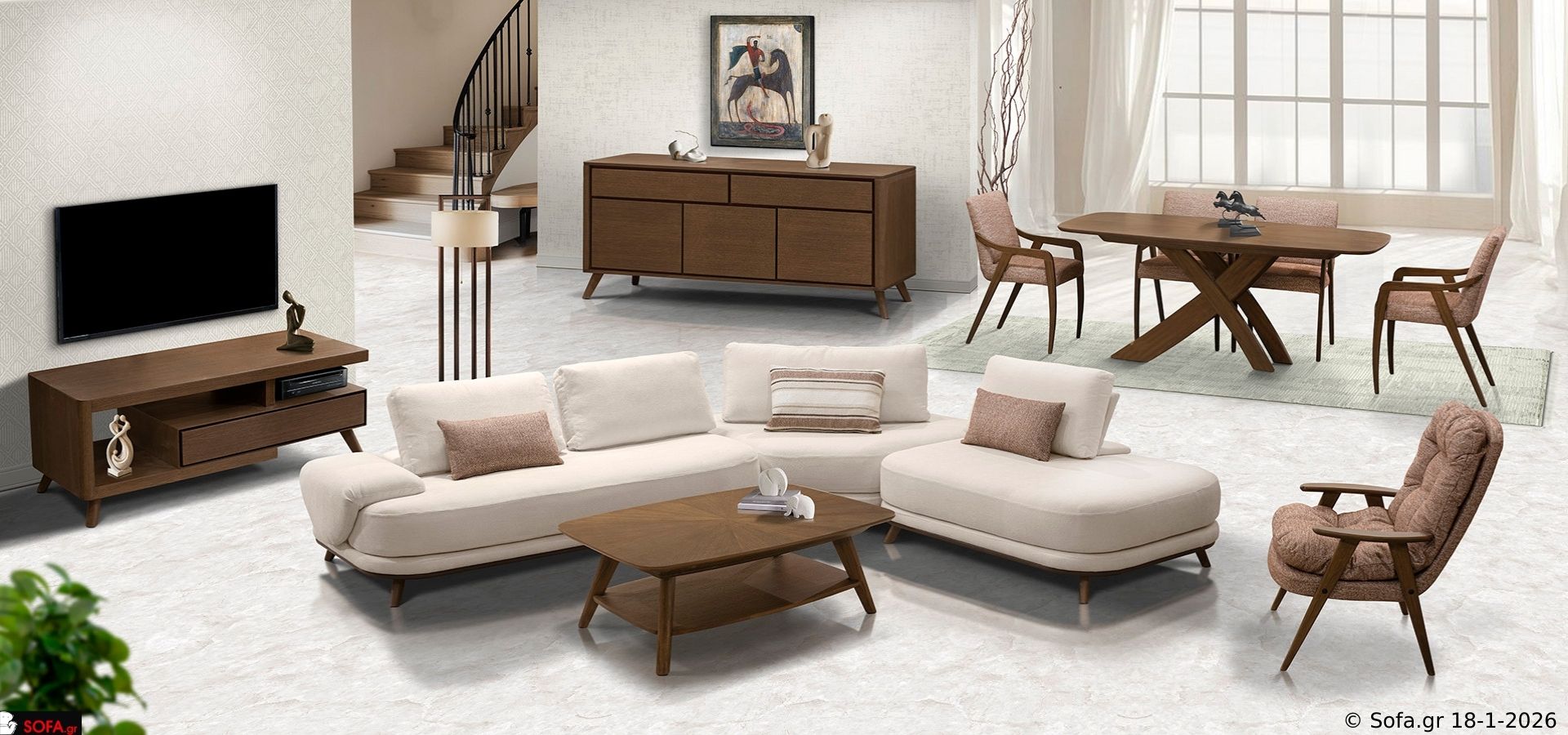 Επιλέγοντας το έπιπλο τηλεόρασης οργανώνετε συσκευές και αντικείμενα, διατηρώντας το σαλόνι σας καθαρό οπτικά, ενώ με τον μπουφές αποθηκεύετε άνετα όσα θέλετε κοντά σας. Οι εργονομικές καρέκλες με τα κομψά μπράτσα σας εξασφαλίζουν ξεκούραστο κάθισμα για περισσότερη ώρα, κάνοντας κάθε γεύμα πιο απολαυστικό.