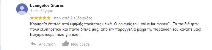 Ευχαριστούμε πολύ για τα καλά σας λόγια κύριε Ευάγγελε ! Καλορίζικος ο καινούριος σου καναπές!